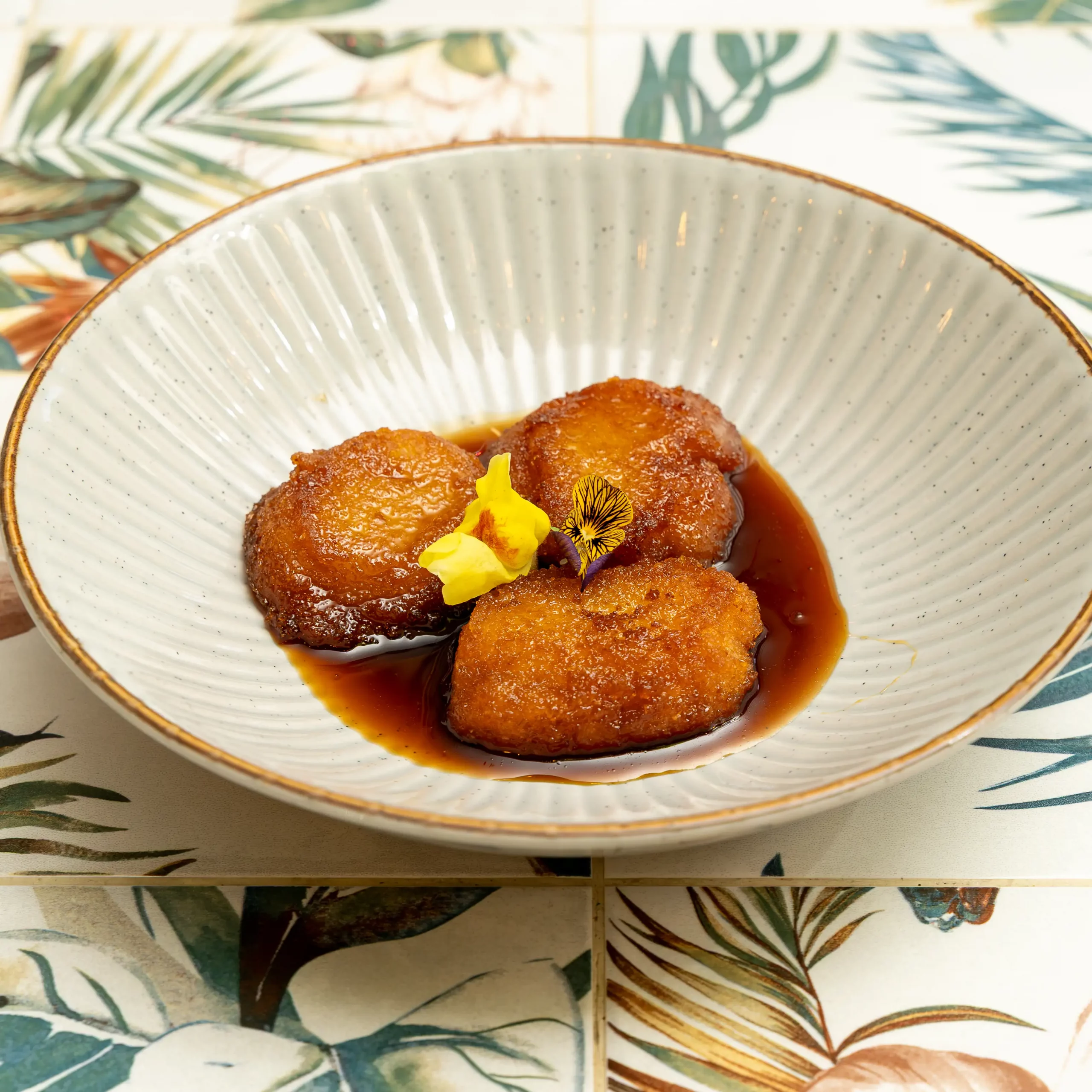 Si creías haberlo probado todo en costillas, déjate sorprender con estas carnosas costillas glaseadas con fruta de la pasión. Puedes elegir entre un costillar completo o medio costillar, servidas con yuca frita y ensalada Coronel. Toda una explosión de sabor.