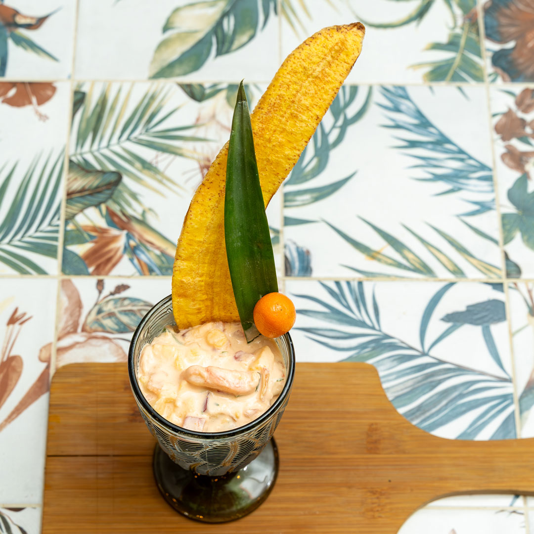 ¿Te sorprende el nombre? Ahora déjanos sorprenderte con el delicioso sabor de nuestra versión de cóctel de camarones, con trocitos de mango y piña y una salsa rosa que hará que no puedas parar. Date el gusto.