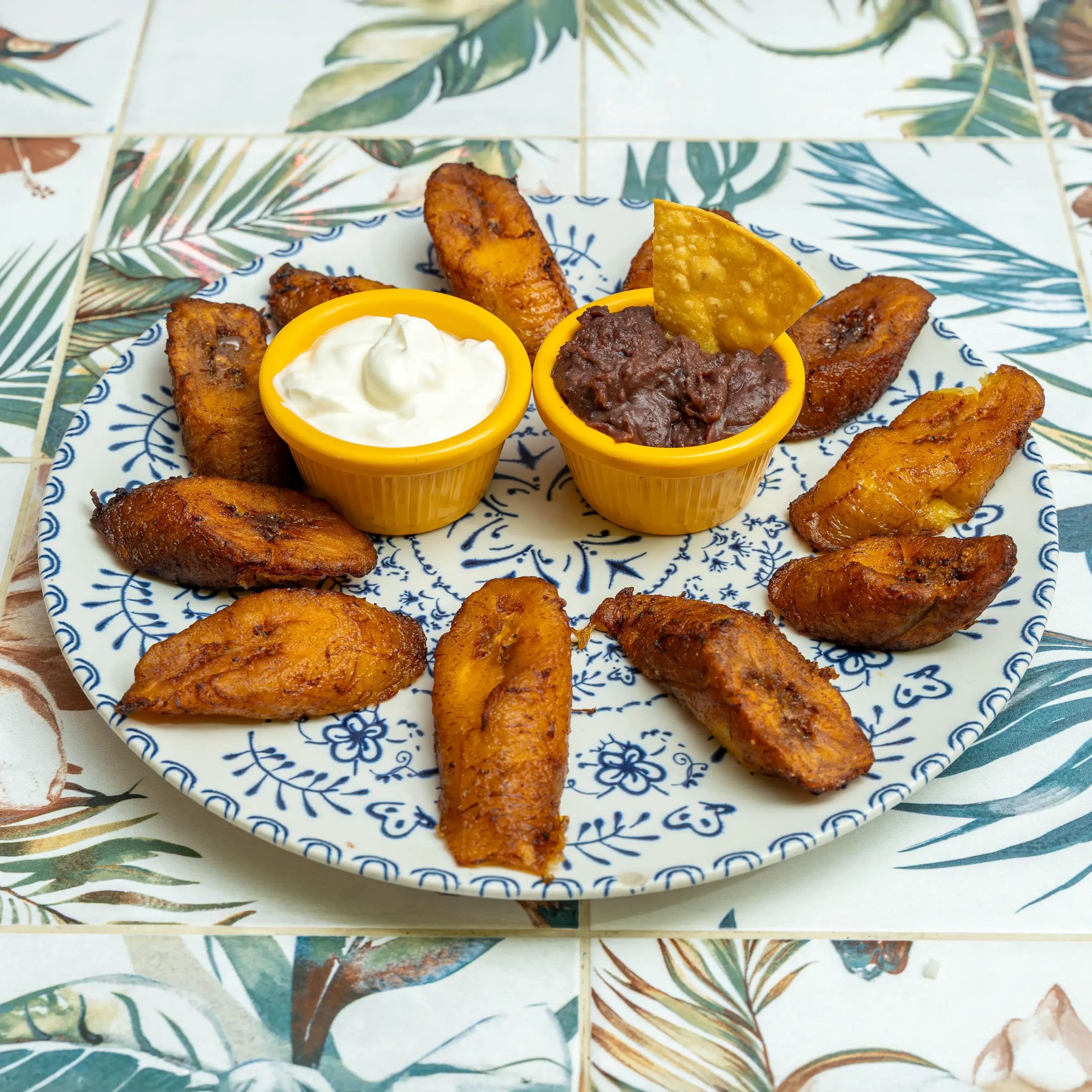 Pollo frito con tajadas